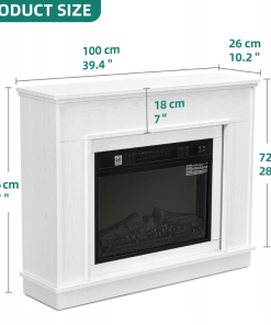 Kominek elektryczny z ogrzewaniem,płomieniem 3D,biały100x26x80cm LED 1800W