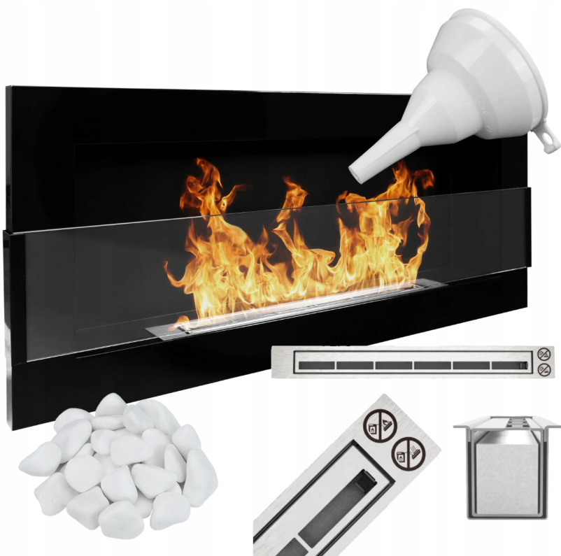 - Paliwo: Biokominek działa w oparciu o bezwonny i ekologiczny bioetanol.