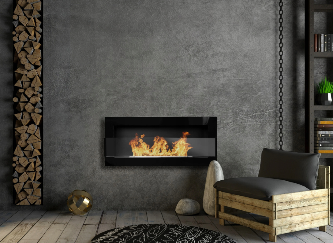 Biokominek 900×400 Czarny Połysk z Szybą