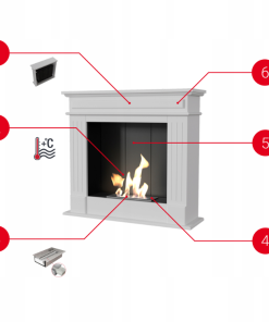 - Biokominek Legionis wykonany jest z wysokiej jakości stali oraz mocnych płyt MDF pomalowanych farbą odporną na wysokie temperatury, tak aby nie powodować odbarwień podczas palenia.