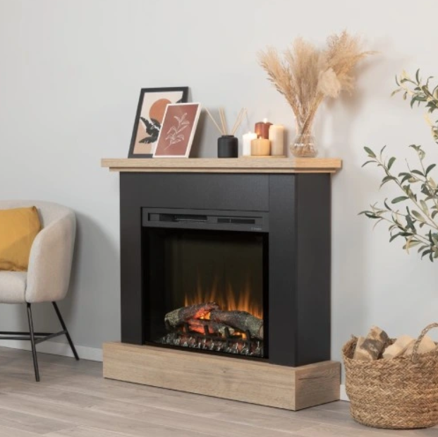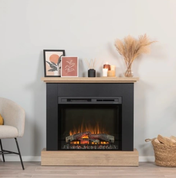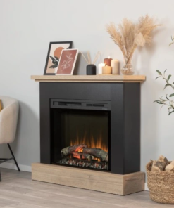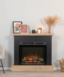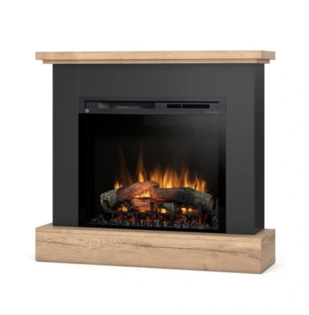Kominek elektryczny Warmtec Jukon z wkładem Dimplex 28″ XHD z efektem Optiflame – W05 – Czarny, jasny dąb